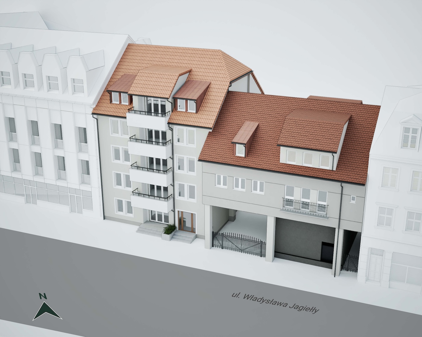 Jagiełły 2 to unikatowa inwestycja, łącząca w sobie urok zabytkowej kamienicy z nowoczesną zabudową. Kompleks składa się z pięciu murowanych budynków mieszkalno-usługowych., w tym pięknego, zrewitalizowanego budynku poczty, w którym znajduje się m.in. niepowtarzalne mieszkanie z wieżą zegarową. Całość inwestycji obejmuje około 100 mieszkań o zróżnicowanej powierzchni oraz lokale usługowe na parterach. Zabytkowe elementy architektury harmonijnie współgrają z nowoczesnymi rozwiązaniami.
