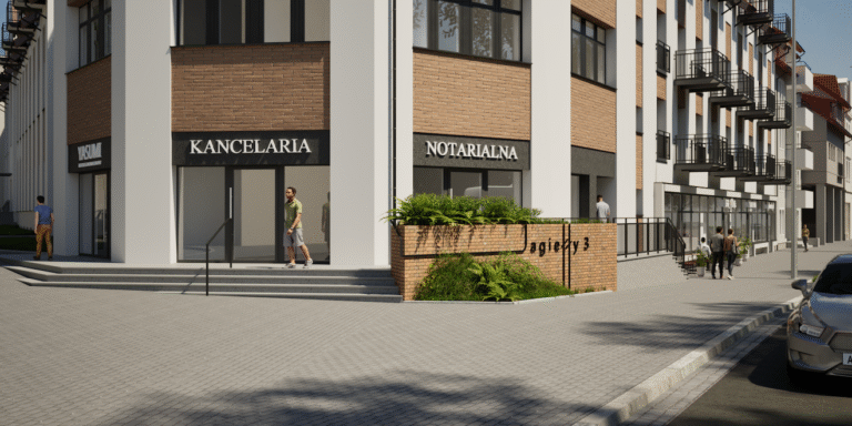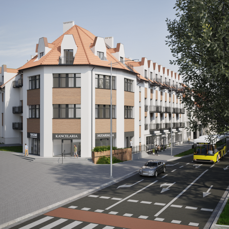 Jagiełły 3 to inwestycja, która łączy nowoczesny styl z niezwykłym klimatem Słupska. Architektura budynku czerpie z miejskiej tradycji – ceglane detale nawiązują do XIX-wiecznego gmachu poczty i okolicznych zabytków, a zabudowa pierzejowa wpisuje się w charakter śródmiejskiej tkanki. Dzięki temu nowoczesne formy zyskują duszę, a codzienne życie toczy się w otoczeniu, które ma swoją historię. To miejsce stworzone dla osób, które cenią estetykę i chcą mieszkać w przestrzeni z charakterem.