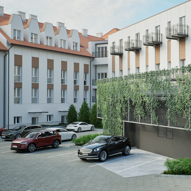 Tutaj wszystko zostało zaprojektowane z myślą o twojej wygodzie. Winda ułatwia codzienne życie – zakupy czy wózek nie są już wyzwaniem. Rowerownia i komórki lokatorskie dają dodatkową przestrzeń na jednoślady, sprzęt sportowy czy sezonowe rzeczy. Monitoring oraz zamknięty parking z 68 miejscami to pewność, że łatwo i bezpiecznie zaparkujesz swój samochód. W parterach budynku znajdziesz lokale usługowe, które skrócą listę codziennych obowiązków – kawa, zakupy czy fryzjer będą na wyciągnięcie ręki. A komfort mieszkania podniesie ogrzewanie podłogowe zasilane z miasta oraz szybki internet. Dzięki nim żyjesz wygodnie, nowocześnie i bez niepotrzebnych zmartwień.